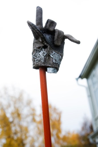 “Stjärnpekare”, Glove on a stick, Sculpture molded in aluminium.